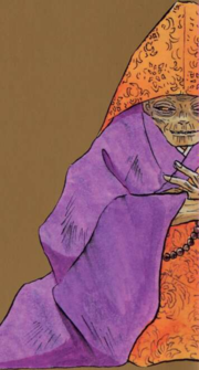 Abaixo outra foto de um desses monges no altar, e a capa de um livro sobre o assunto (ambos obtidos neste link, sugerido pela Wikipedia):